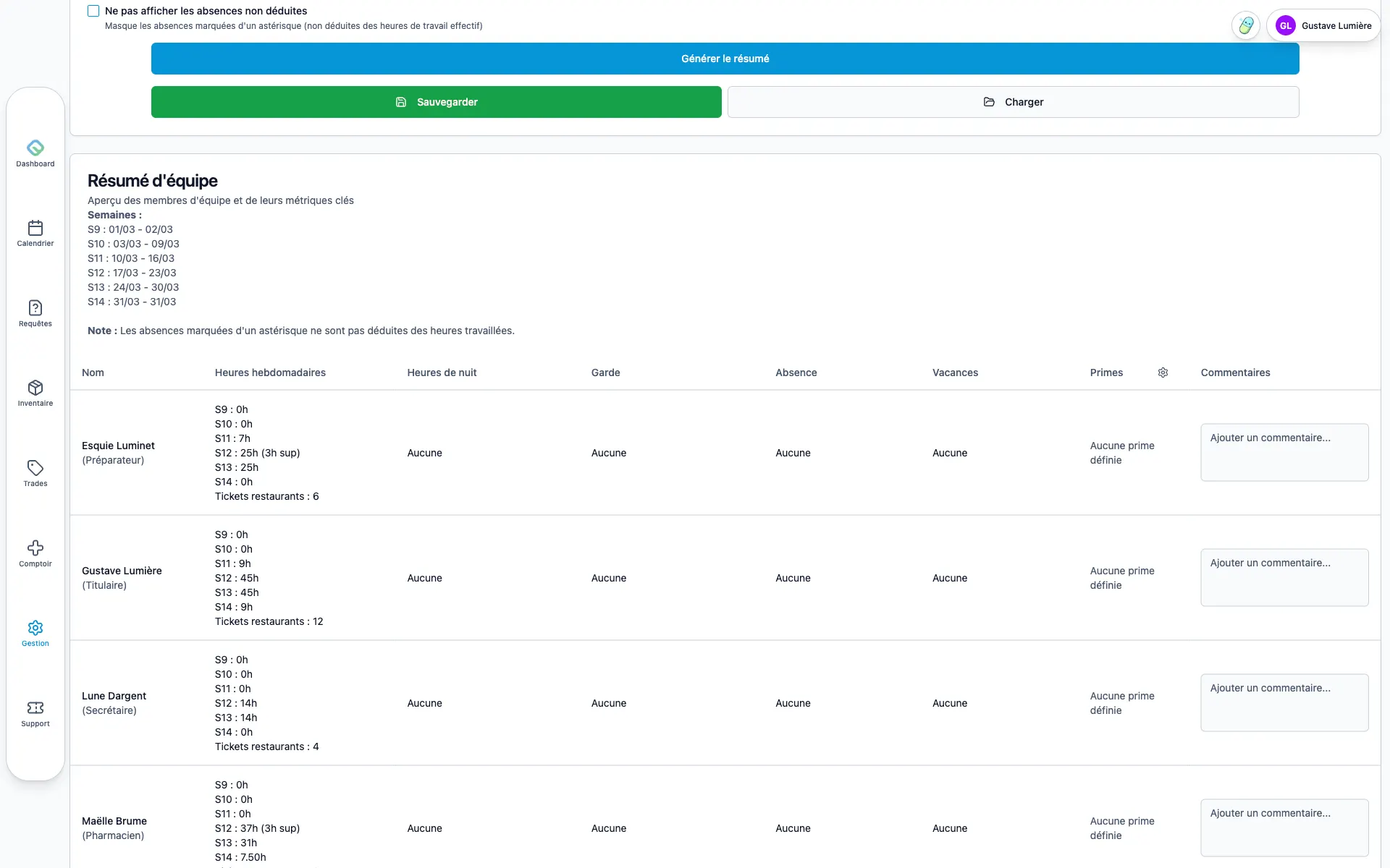 Fini les feuilles Excel et les messages WhatsApp. FlowPharm centralise tous les horaires, congés et changements de dernière minute dans une interface unique, conçue spécifiquement pour les contraintes de l'officine.